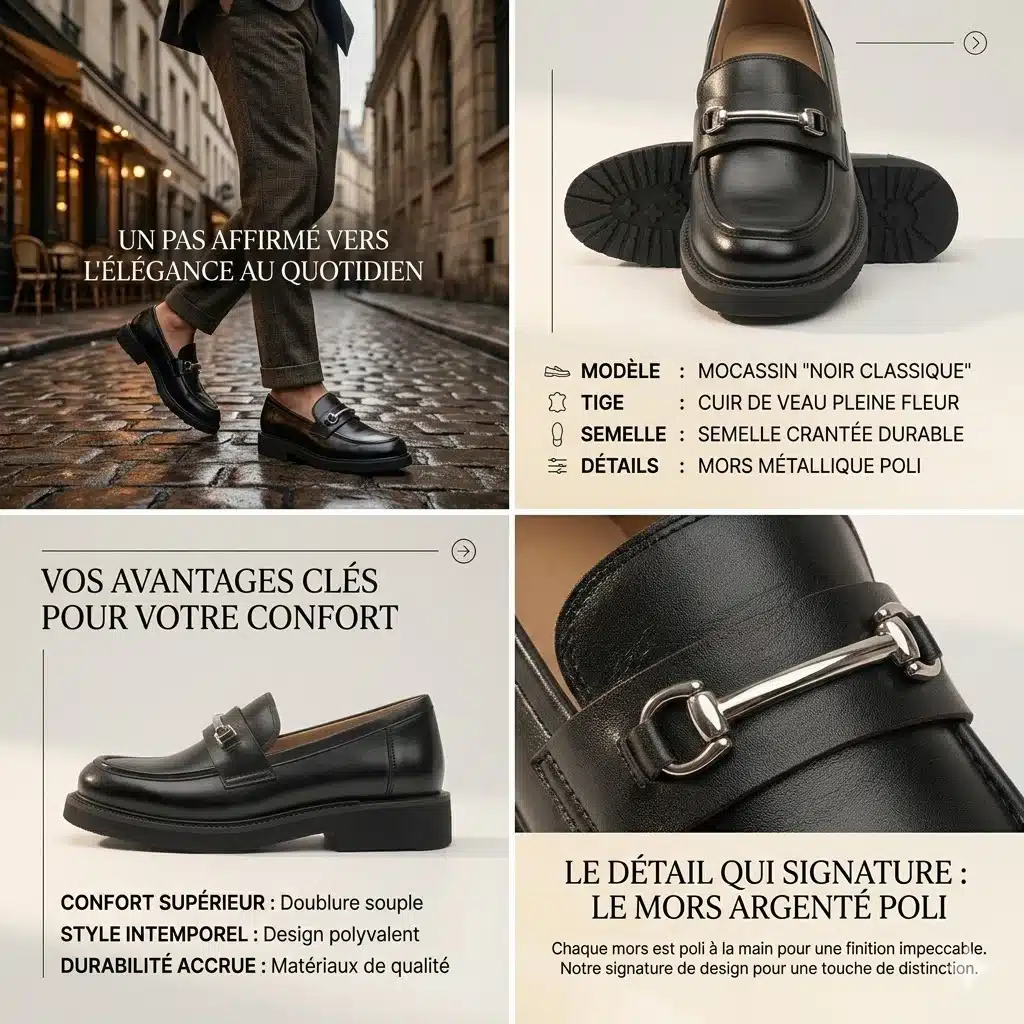 Découvrez également notre collection de mocassin cuir femme, idéale pour un look élégant et durable. Parcourez nos mocassins femme plateforme, parfaits pour un style intemporel. Explorez aussi nos mocassins femme souples, pensés pour un confort maximal au quotidien.